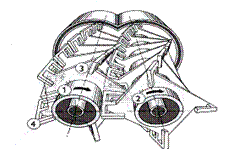 WZS型自清洁脱挥器为连续式操作,由一个水平壳体和两个水平轴组成。在8字形截面的壳体内,两搅拌轴相互啮合,双轴同向旋转,分主轴和清洁轴(见图1)。双轴旋转过程中所产生的动态轮廓线确保了设备中无死角,即自清洁作用(见图2)。为了在提供强力混合的同时又推动物料(包括高粘度物料)逐渐前移,搅拌桨和U形捏合杆按螺旋状排列,这种排列方式为高粘度的PDMS物料的轴向前移提供了推动力,而且能阻止物料的反向流动,使物料在设备中的流动接近平推流,从而提高了物料的脱挥效果。
