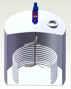 | 50m3生物制药发酵罐搅拌机外形 | 50m3生物制药发酵罐搅拌机内部结构 |