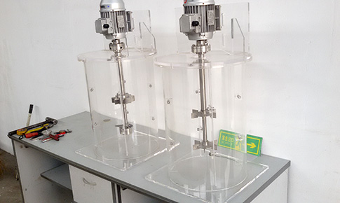 ▲ 多种冷模实验装置应用,对于研究放大后搅拌机功率、桨型选择、混合效果、气泡分布特性等提供了实际基准;