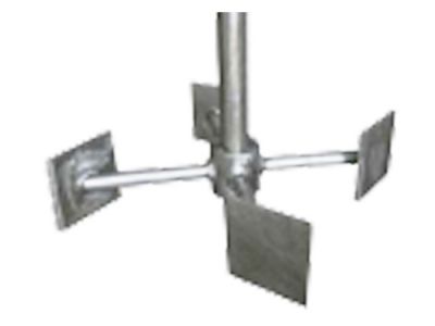 | 四叶泛能涡轮桨 | 径流搅拌器,使用转速范围大,使用粘度范围广,具有高剪切力及湍流扩散能力。因其没有圆盘,不会阻碍桨叶上下液混合,在有挡板槽中可以形成较大的对流循环,特别适用于剪切分散操作,同时因具有良好的循环和剪切能力,也用于一般的固体溶解、反应、传热、乳化、结晶、固体悬浮操作。 |