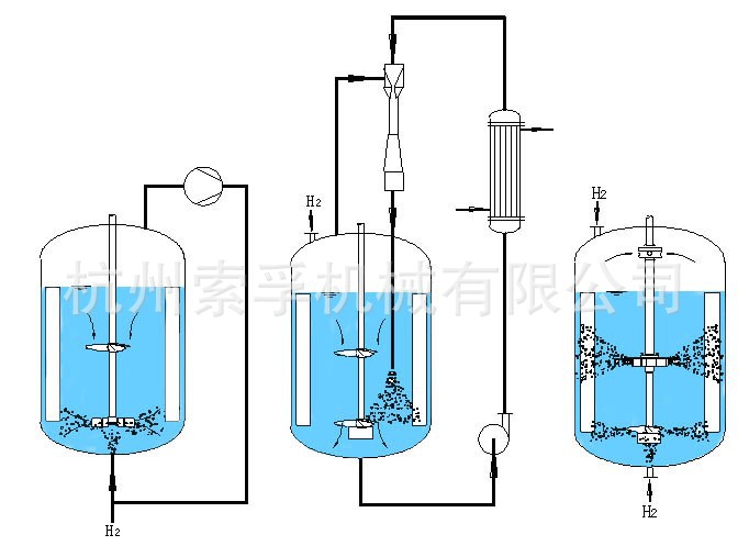 | 图2 组全桨反应器 | 图3 循环式反应器 图4 自吸式反应器 |