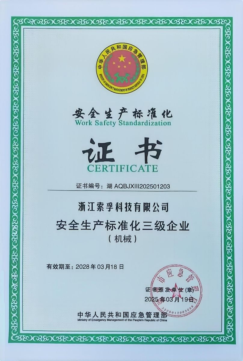 【喜讯】浙江索孚科技获得“安全生产标准化企业“称号
