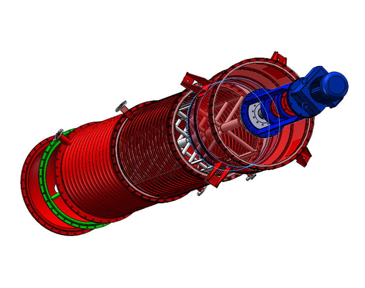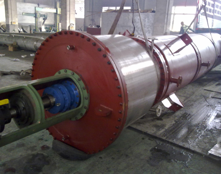 加热室圆筒体内表面,必须经过精加工。保证刮板与加热面之间的小隙在1.5±0.3毫米左右。