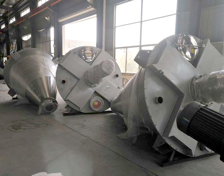 2、双螺旋锥形混料机与其他混合机相比较,装机功率低比较低,混合高效节能。