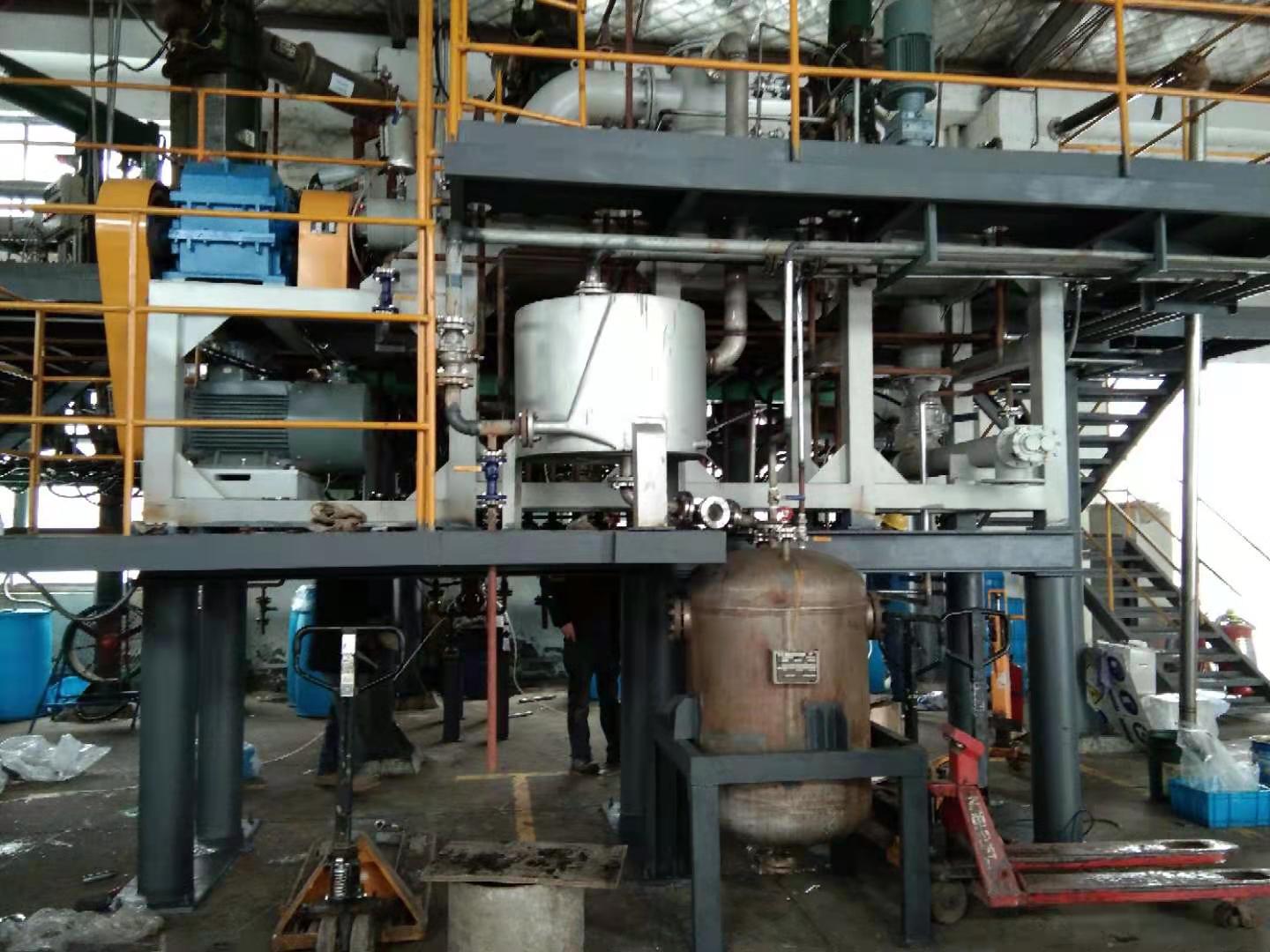 安装在反应器顶部的聚气室用于气体排放。聚气室可加热,以避免气体冷凝和回流。由于聚气室的口径较大,汽体在聚气室里的流速极低,即使在高真空的条件下,液滴的夹带量仍极小。