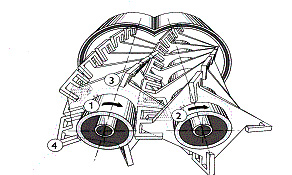 | 图1. WZS型自清洁脱挥器的工作原理 | 图2. WZS型自清洁脱挥器动态轮廓线与自除清洁作用 |