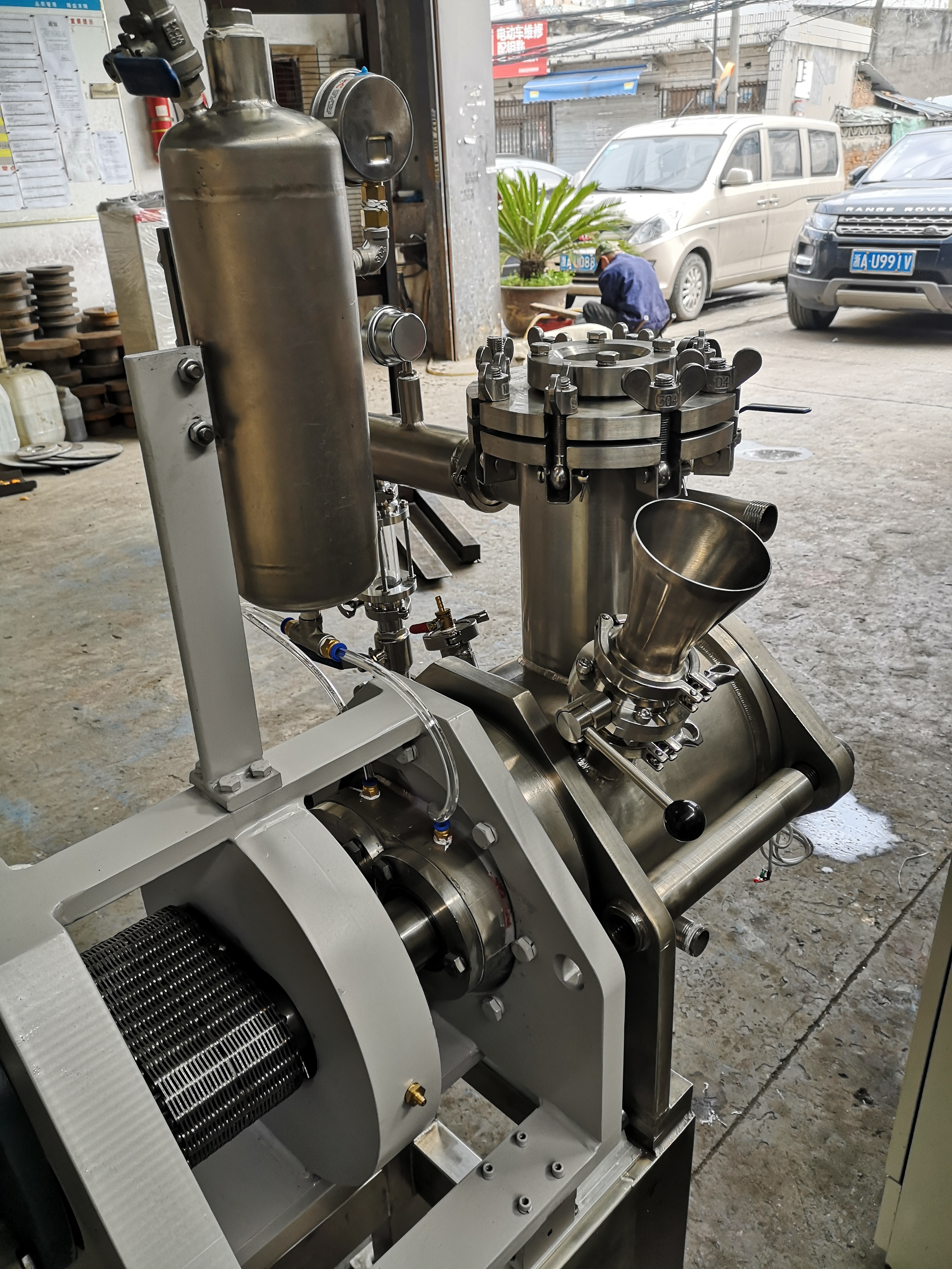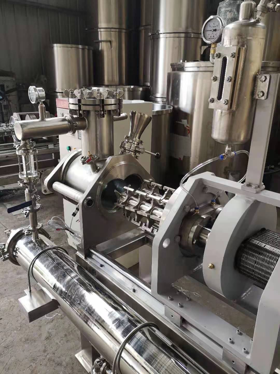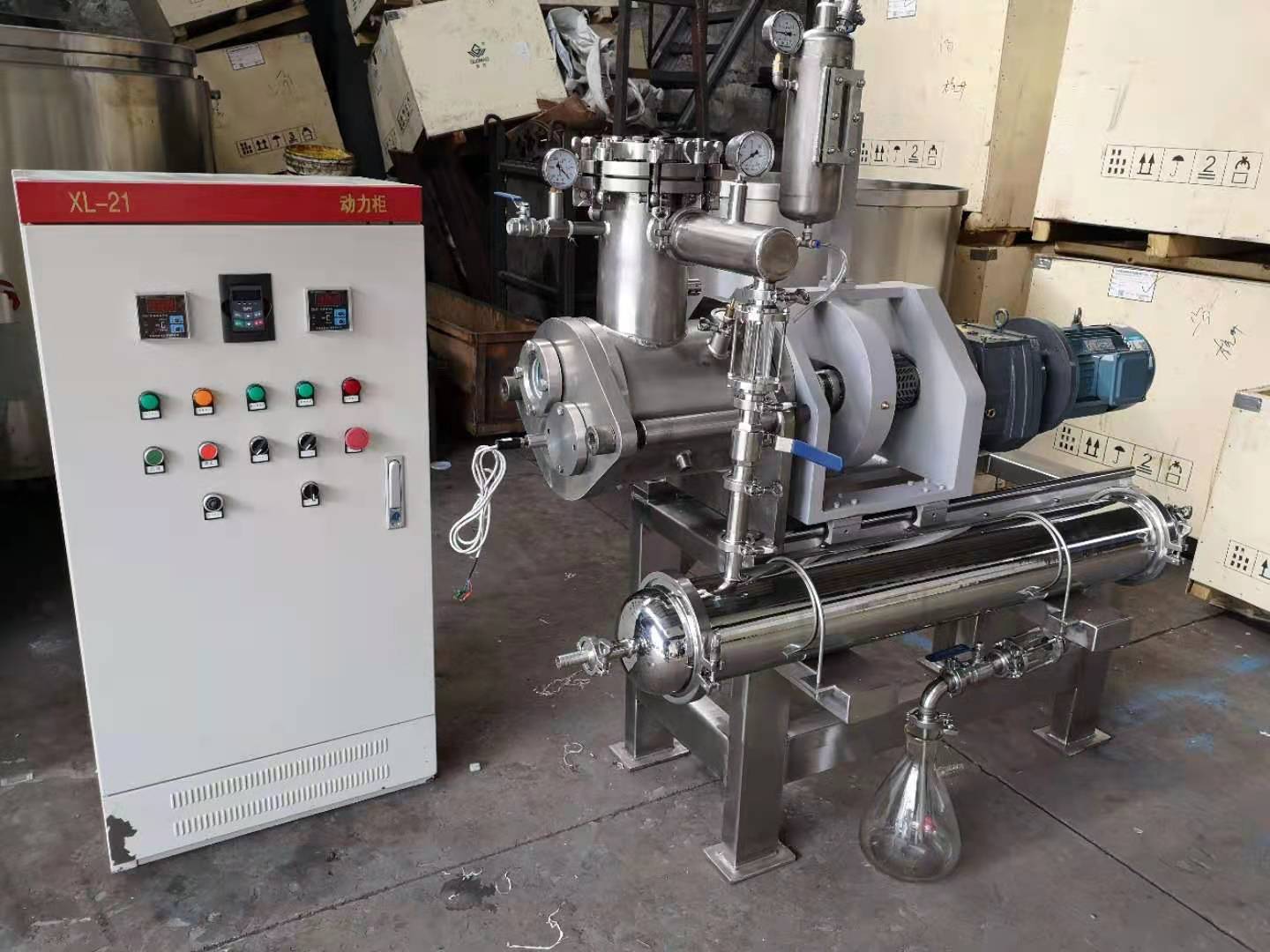 为了适应在真空状态下的操作,专门安装了适用于高粘度物料的齿轮泵式出料器。该出料器直接安装在主设备上,消除了设备内的死角。齿轮泵式出料器在稍微超负荷的条件下工作,以保证物料能连续地排出,并输入下一工段进行包装。