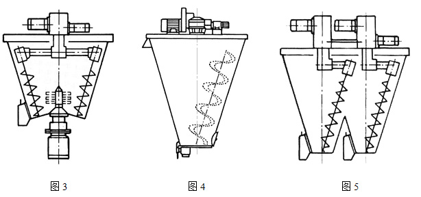 6、如图4所示 ,改变两根实体螺旋面为单根带式螺旋结构,可以使该机适合于含湿量≥8%的物料和易凝聚物料的混合;